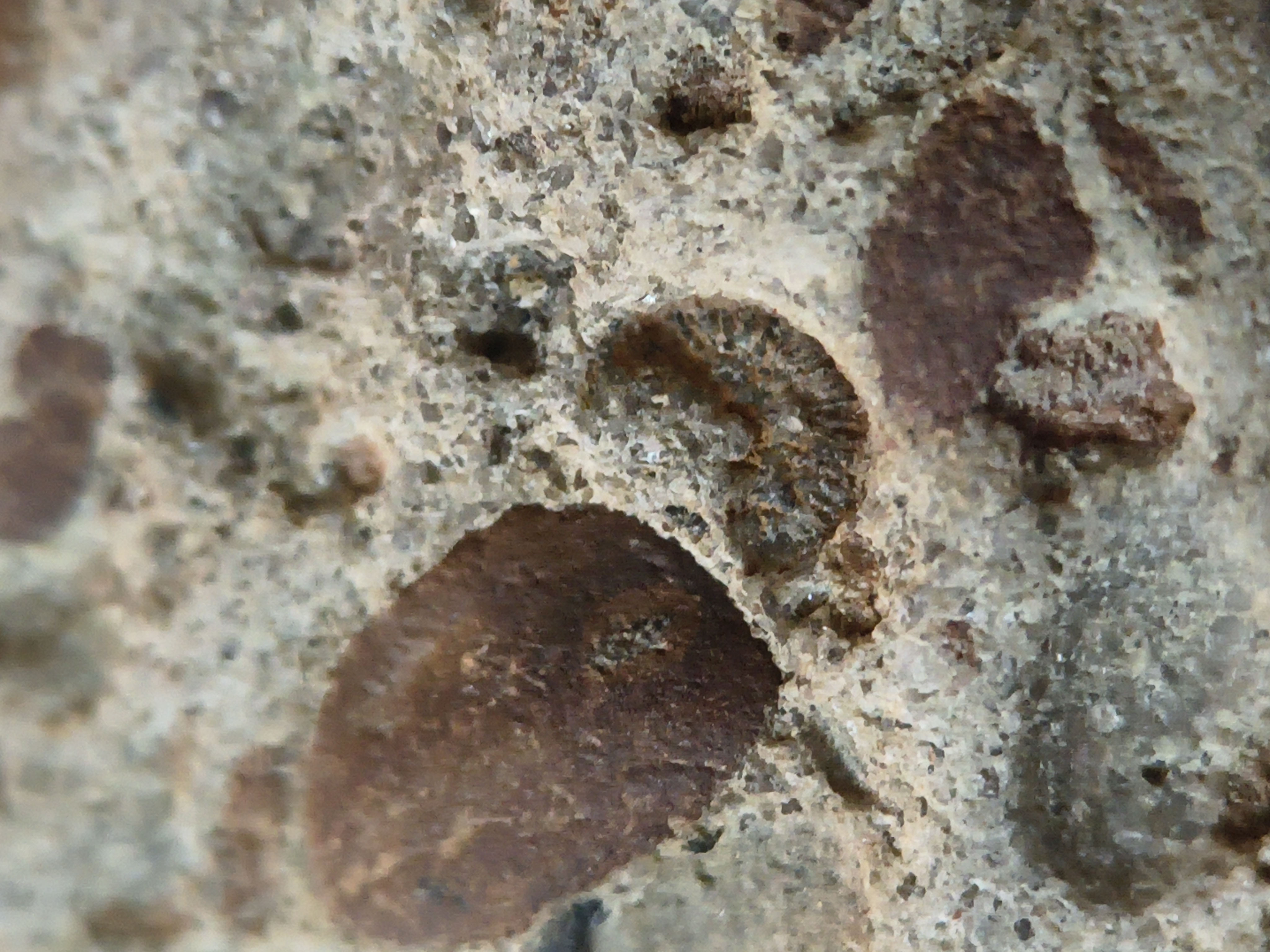 RR8 Fossiliferous Conglomerate with Crinoid, Brachiopod, and Goniatite(cf) Impressions