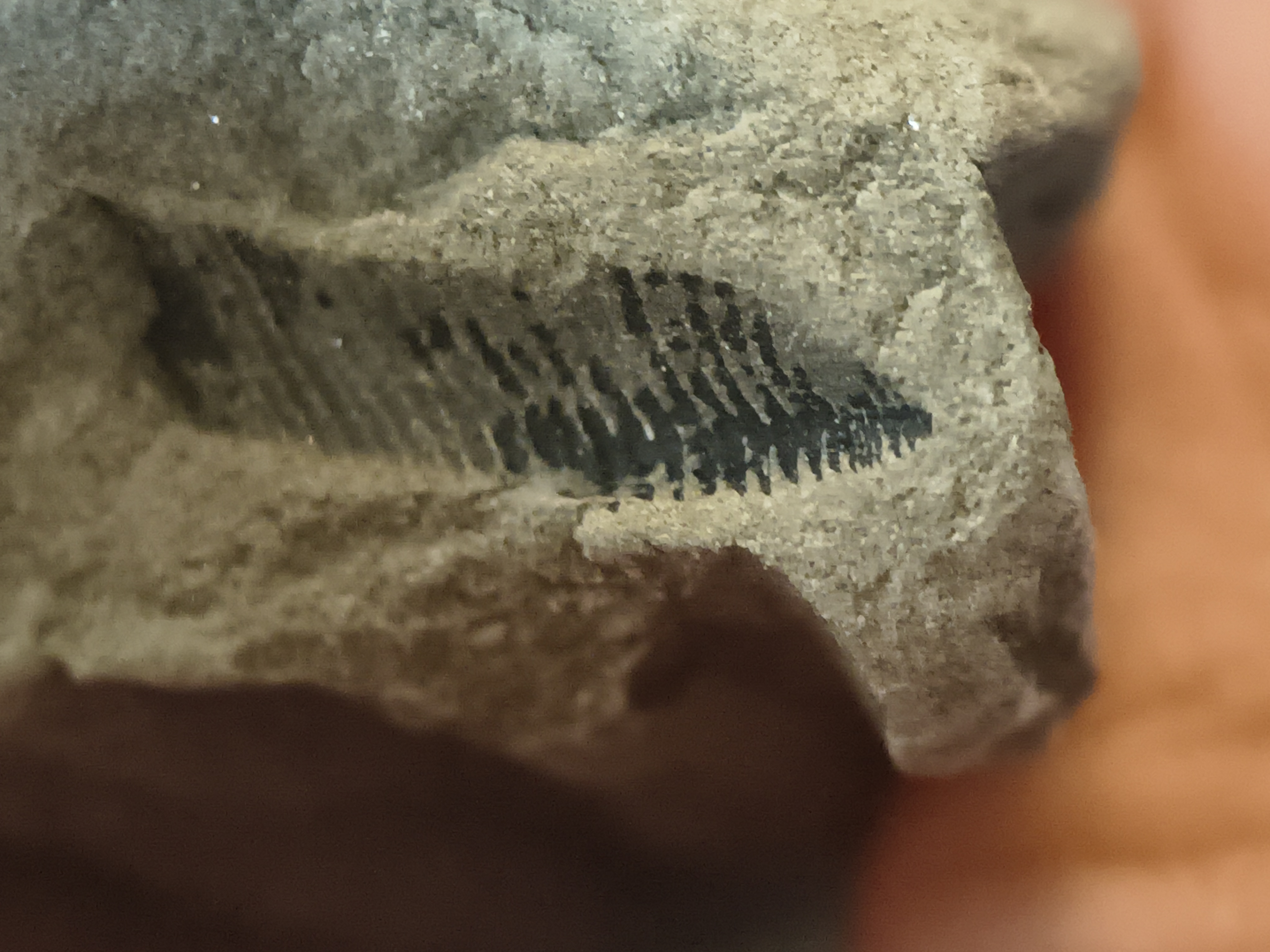 RR. 16, indet. fossil, likely brachiopod piece