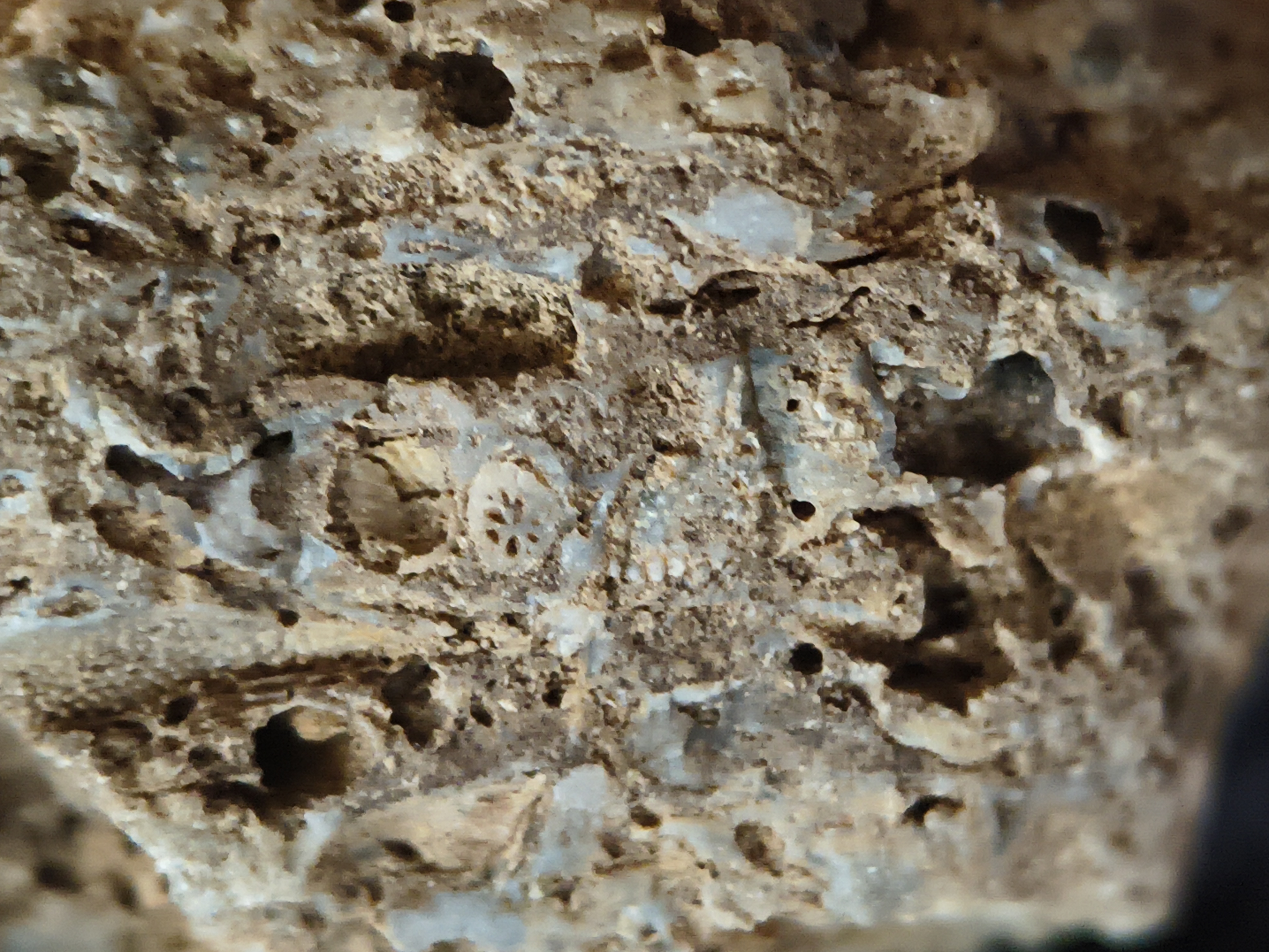 - brachiopod, Bryozoan, Coral, Cystoporid Bryozoan , packstone, river rock, Rugose Coral
